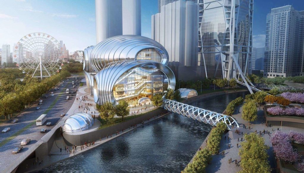 7 Huaxi Tower is a 330 ft tall office building that was a joint venture between MAD Architects, TWA, and several other international architects.