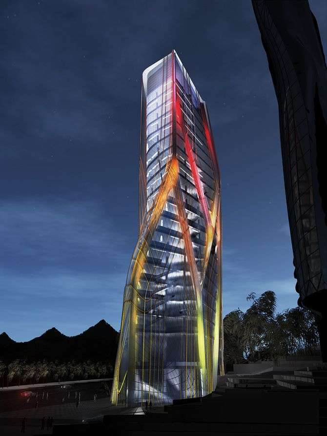 Nowhere in China is the disparity between economic reality and architectural ambition more stark than in Guiyang, capital of rural Guizhou, the poorest province in the country, which has the fifth most skyscraper plans of any Chinese city. The twin 335-metre towers of the Huaguoyuan development, by Arup, are now almost complete, standing as the centrepiece of a new mixed-use office, retail and entertainment complex, while SOM is busy conjuring the even higher Cultural Plaza Tower, a 521-metre glass spear that will soar above a new riverfront world of shopping malls and theatres.