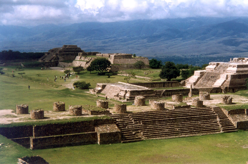 02 Historic Centre of Oaxaca and Archaeological site of Monte Albán. Inhabited over a period of 1,500 years by a succession of peoples – Olmecs, Zapotecs and Mixtecs – the terraces, dams, canals, pyramids, and artificial mounds of Monte Albán were literally carved out of the mountain and are the symbols of a sacred topography. The nearby city of Oaxaca, which is built on a grid pattern, is a good example of Spanish colonial town planning.