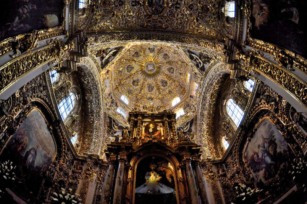 03 Historic Centre of Puebla. Puebla, which was founded in 1531. It is about 60 miles east of Mexico City, at the foot of the Popocatepetl volcano. It has preserved its great religious structures such as the 16th–17th-century cathedral and fine buildings like the old archbishop’s palace, as well as a host of houses with walls covered in tiles.