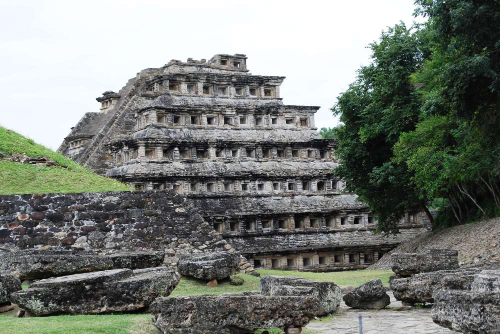 10 El Tajin, Pre-Hispanic City (in Papantla, Veracruz). At its height from the early 9th to the early 13th century, its cultural influence extended all along the Gulf and penetrated into the Maya region and the high plateau of central Mexico. Its architecture, which is unique in Mesoamerica, is characterized by elaborate carved reliefs on the columns and frieze.