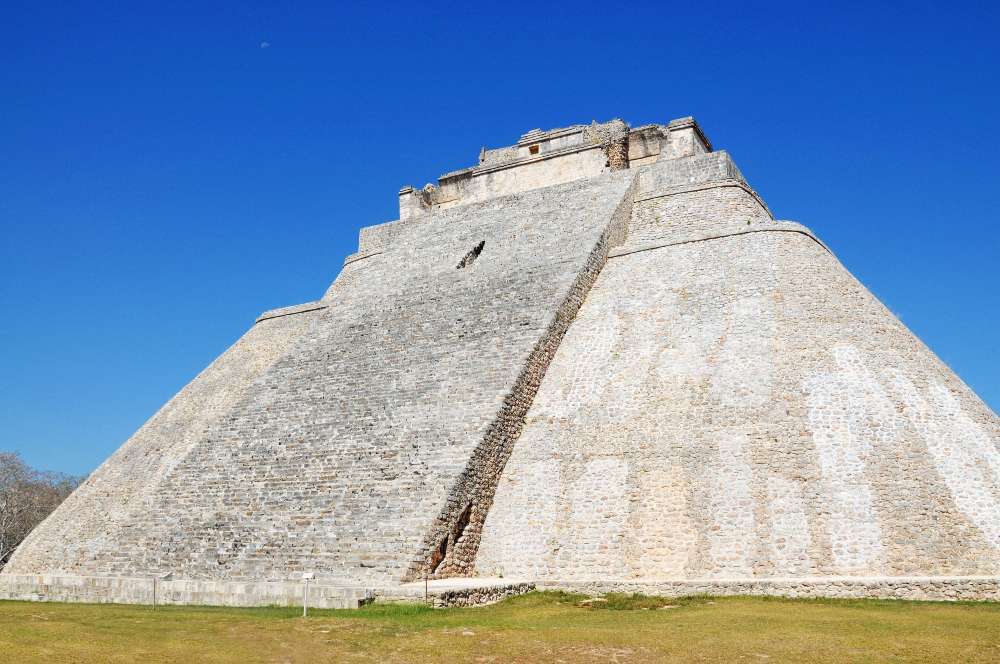 16 Pre-Hispanic Town of Uxmal (in Yucatán). This Mayan town was founded c. A.D. 700 and had some 25,000 inhabitants. The layout of the buildings, which date from between 700 and 1000, reveals a knowledge of astronomy. The Pyramid of the Soothsayer dominates the ceremonial center.