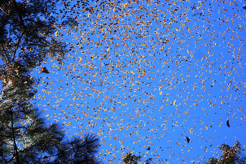 27 The Monarch Butterfly Biosphere Reserve (in the states of Michoacán and Mexico) is a 139,000 acre biosphere about 60 miles northwest of Mexico City. Every autumn, millions, perhaps a billion, butterflies from wide areas of North America return to the site and cluster on small areas of the forest reserve.