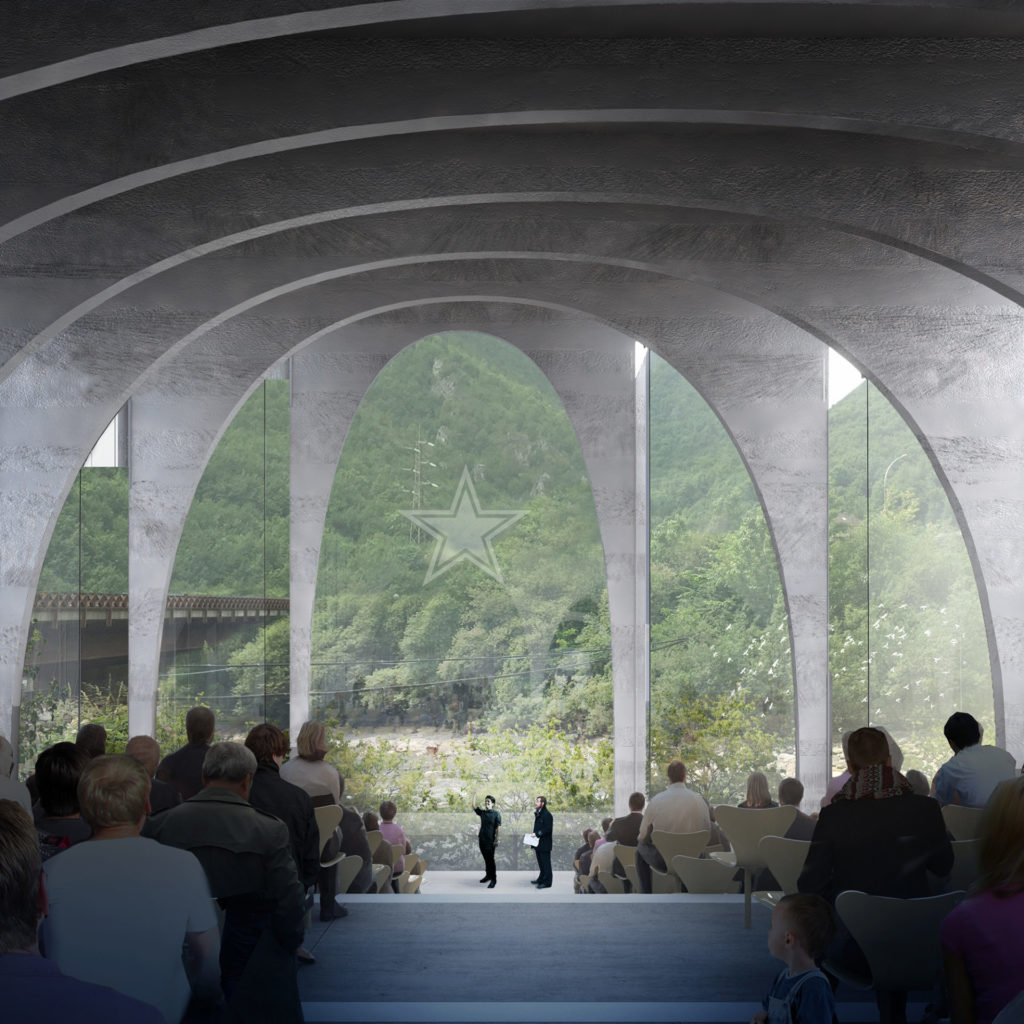 However, there’s clearly another inspiration for the building’s sensibility: San Pellegrino’s brand itself. Inviting but austere, aspirational but democratic, the project feels just as informed by a high-level creative brief as much as it does by architectural drawings.