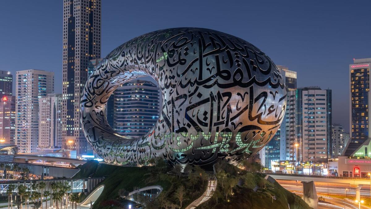 Now, a museum in Dubai dedicated to the future, which has been called “the most beautiful building in the world” by the emirate’s ruler, Sheikh Mohammed bin Rashid Al Maktoum, is officially open to the public. Designed by local studio Killa Design, the museum is alongside Dubai’s elevated train line, a short distance from the world’s tallest building—the Burj Khalifa. It was designed to be and indeed instantly became an architectural and cultural icon.