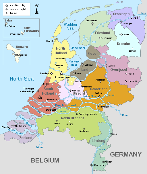 The Netherlands consists of 12 provinces, but many people use “Holland” when talking about the Netherlands. The two provinces of Noord-Holland and Zuid-Holland together are Holland. The 12 provinces together are the Netherlands. The Netherlands is a kingdom that came into existence after Napoleon’s defeat in 1815. At the time it included Belgium. After the secession of Belgium in 1830, the map of the Netherlands was redrawn and the country we know nowadays consists of 12 provinces: Groningen, Friesland, Drenthe, Overijssel, Flevoland, Gelderland, Utrecht, North-Holland, South-Holland, Zealand, North Brabant, and Limburg.
