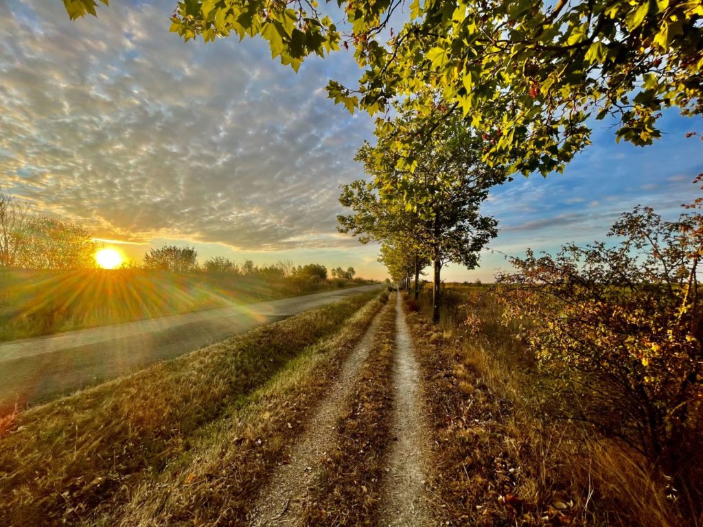 Camino Path at sunrise near Mansilla de las Mulas, Spain