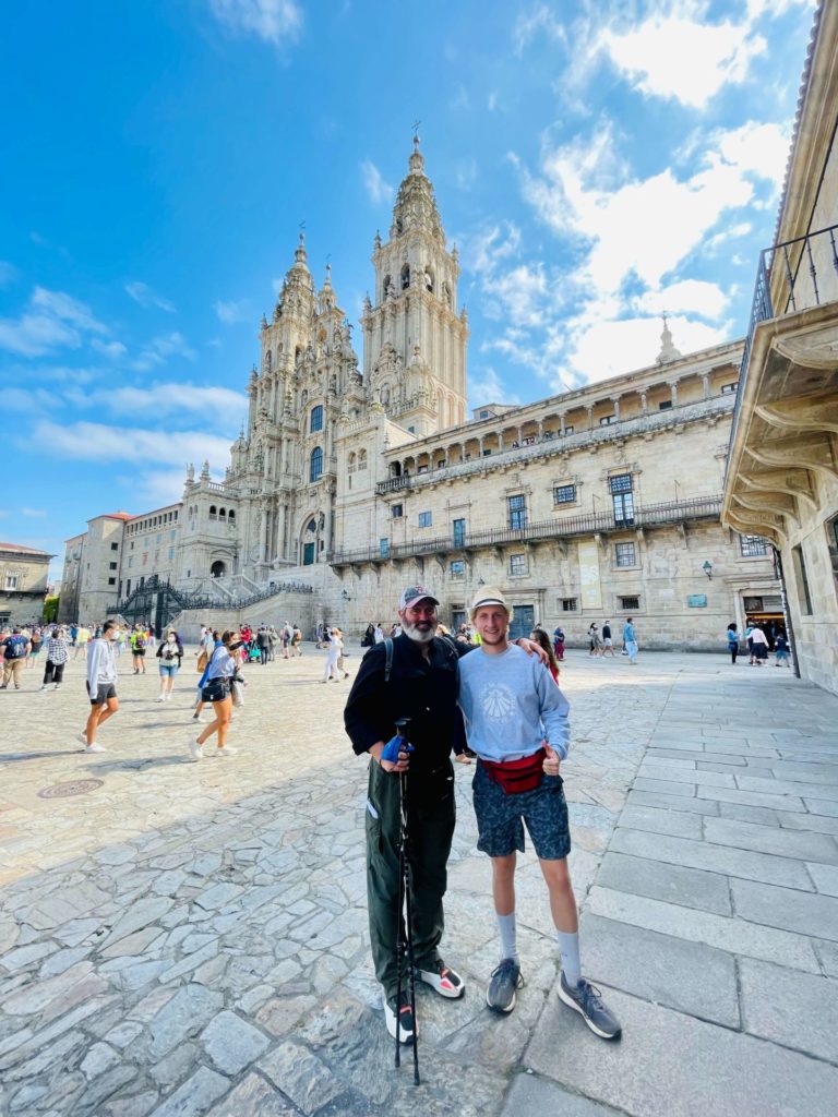 Father (Author) and Son (Alexander Edwards) In front of the Camino’s finishing point (The Cathedral at Santiago de Compostela, Spain) on August 18, 2021.