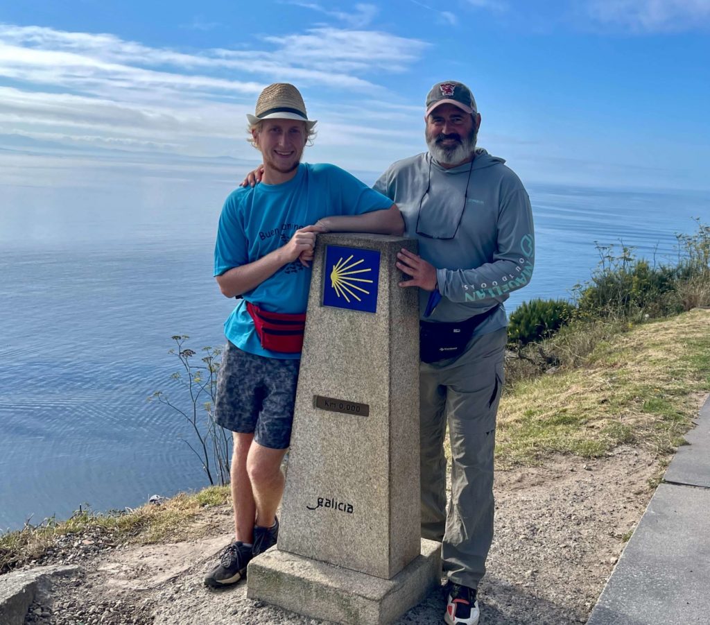 Father (Author) and Son (Alexander Edwards) at Camino marker in Finisterre, Spain (“End of the Earth’)