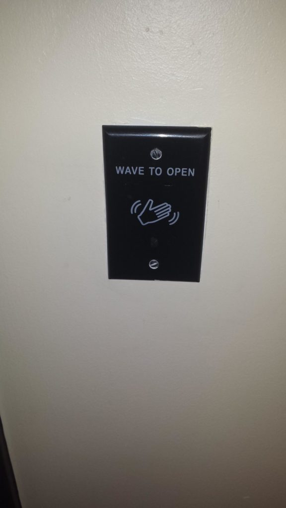 Within the building itself, retrofitting automatic door openers on all public area doors appears to be the logical way of reducing touched surfaces. Should space permit, an automatic revolving door is a great solution for touchless entry into a building or space. Where electricity is limited, a foot-operated door opener is also a viable alternative.