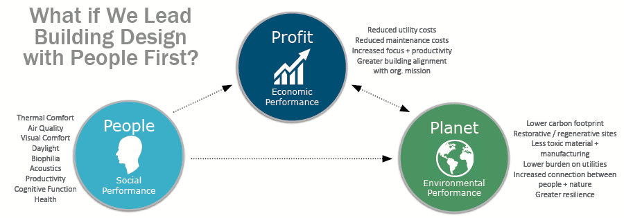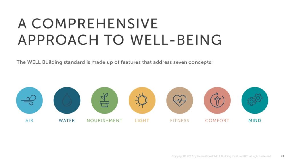 The evolution of the sustainable movement to introduce means and methods for promoting, encouraging and measuring the 7 petals the International WELL Building Institute (IWBI) identifies goes a long way beyond the reduction of the operational impact, life cycle costs, material utilization, landfill waste and travel distances quantified in and calculated in the LEED or other pre-certification processes. Those metrics are extremely valuable and need to work collaboratively with the WELL Building StandardTM and the Living Building Challenge®. However the value of looking holistically provides a system that encompasses all aspects of a building and its impact on the person as well as the environment.
