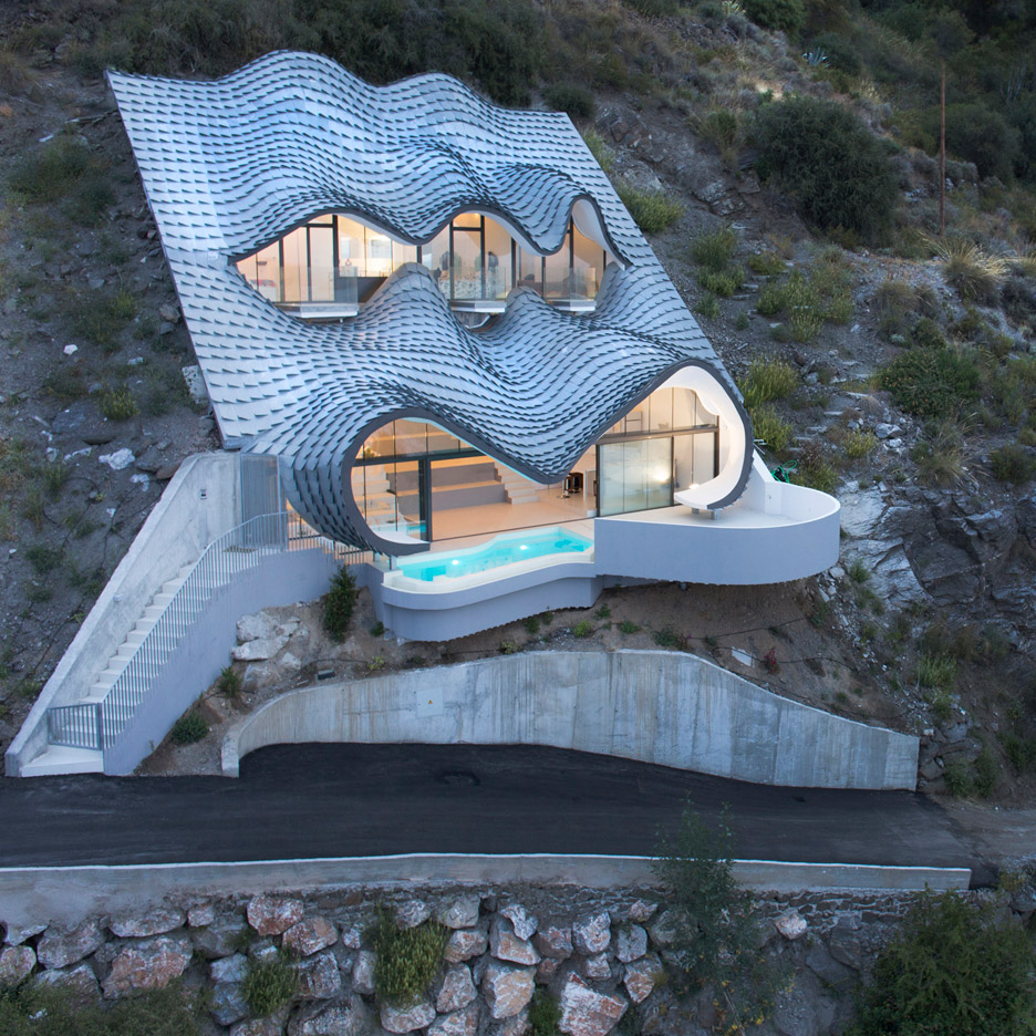 Appropriately named House on the Cliff, this structure was designed by Madrid architectural firm GilBartolomé Architects for a couple who bought a hillside plot with a 42-degree inclination. The two-story house, which is largely buried in the ground and covered by an undulating zinc-clad roof, was completed in 2015. It is in the Spanish province of Grenada and overlooks the Mediterranean Sea.